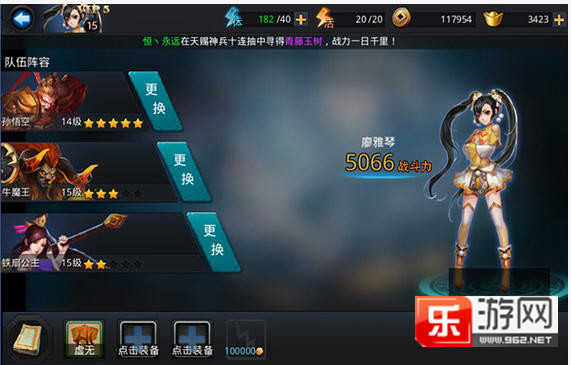 初始英雄,三個分別是:牛魔王、白骨精和哪吒。這三個英雄都有自己的特點:老牛是一個肉盾,哪吒是個戰士,有穩定的輸出也有文檔的控制,白骨精一個萌妹子,類似安妮,兼并控制和輸出,這三個英雄的選擇就看大家自己的喜好。選好初級英雄之后,就是后期的高級英雄了,高級英雄的獲得途徑來自【奇遇】之尋仙捉妖中了。如果運氣好,單抽能出一個三星的英雄那就最好了,不過十連抽是必得三星的,還有可能得到二郎神,太上老君這些四星英雄。