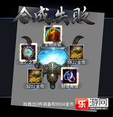 裝備的合成需要大家在合成界面去合成,五個低級的合一個高級的,如:五個白色的合一個綠色的,五個綠色合一個藍色,五個藍色合一個紫色,五個紫色合一個金色,五個金色合一個橙色。期間合成并不是百分百的,而是有一定的幾率失敗的。如下: