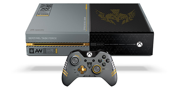除了硬盤容量是標準版Xbox One(500G)的2倍外,這款限定版Xbox One還贈送一份《使命召喚11:高級戰爭》游戲,微軟《極限競速5》年度版游戲以及獨特的《使命召喚》主題設計。另外還有一個《使命召喚11:高級戰爭》迷彩手柄。