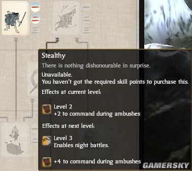 Lv.3:軍隊(duì)于受伏擊(埋伏)時(shí),增加統(tǒng)率4點(diǎn)&開(kāi)啟“夜襲”功能