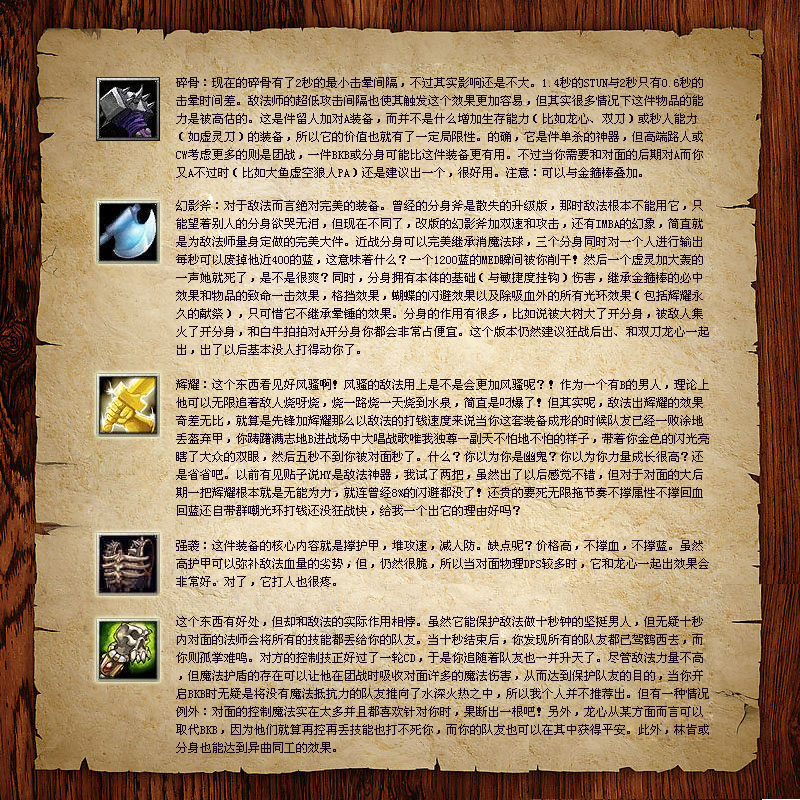 秘法鞋:真是有點折翼的想法,只是為了秀新思路才這么出吧。HF15級雙倍一房見過個敵法秘法鞋梅肯的,喲喂看見真風騷實則毫無用處,要刷錢沒刷錢要打架沒打架敢情你在玩輔助?B過來開梅肯救隊友倒是挺亮的不過這貌似不是他的職責,隊友保他打錢最后他這么回饋隊友實在是太對不起他們了。其實他們本來優勢如果他好好玩能贏的。嗯,扯遠了,出這個無疑是為了刷野怪時B所的回藍,但我橫著想豎著想狂戰加祭品的回藍也夠了不用搭上這么個倒霉鞋吧…見過大神出,但我是不喜歡