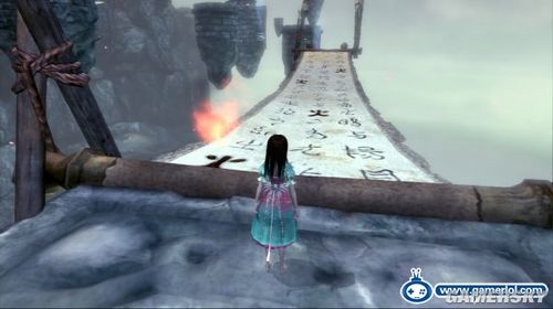 看到墻壁上的噴火獸后愛麗絲利用縮小察看到隱形平臺并且通過,在最后一個平臺要先用茶壺將對面的墻壁打開才可以進入,打開魚嘴機關后繼續前進。在中央有黃色煉丹爐的院子中遇到鬼子將軍,它的盔甲很厚愛麗絲要先用茶壺將他炸暈后才可以清除它的盔甲,最后進入到神廟中。