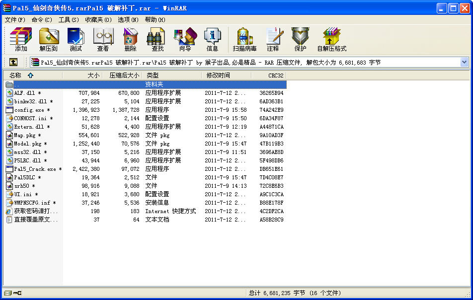 最近有人給小編發(fā)了一個 華北破解組的 仙劍奇?zhèn)b傳5破解補丁壓縮包,打開壓縮包界面: