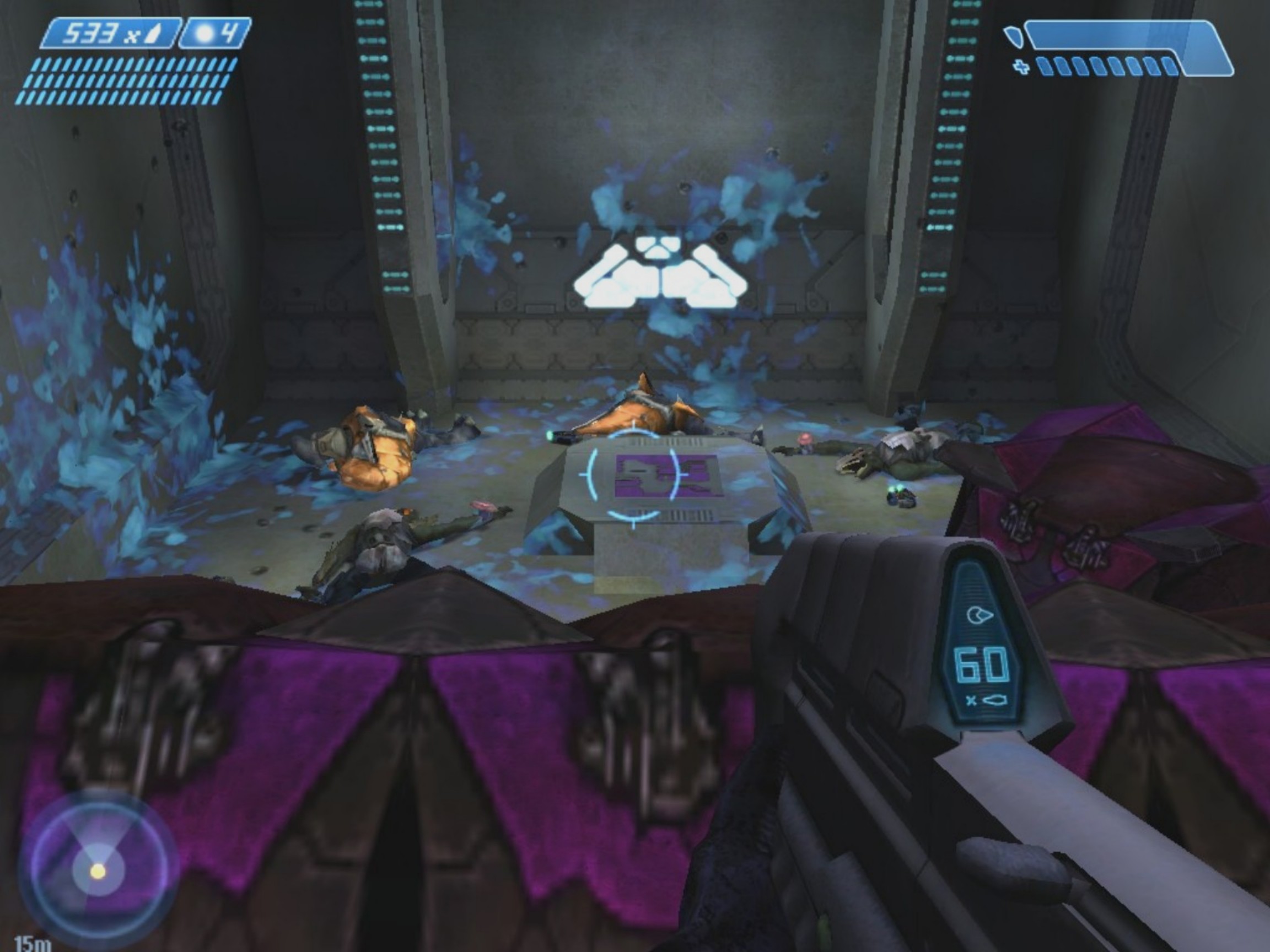 沒有敵人了,除了偶爾會看到幾具死尸,人類、外星人都有。啟動能量橋,到達對岸,跨過兩死掉的陸戰(zhàn)隊員往下走,進入動畫,也許可以解開我們的疑問。