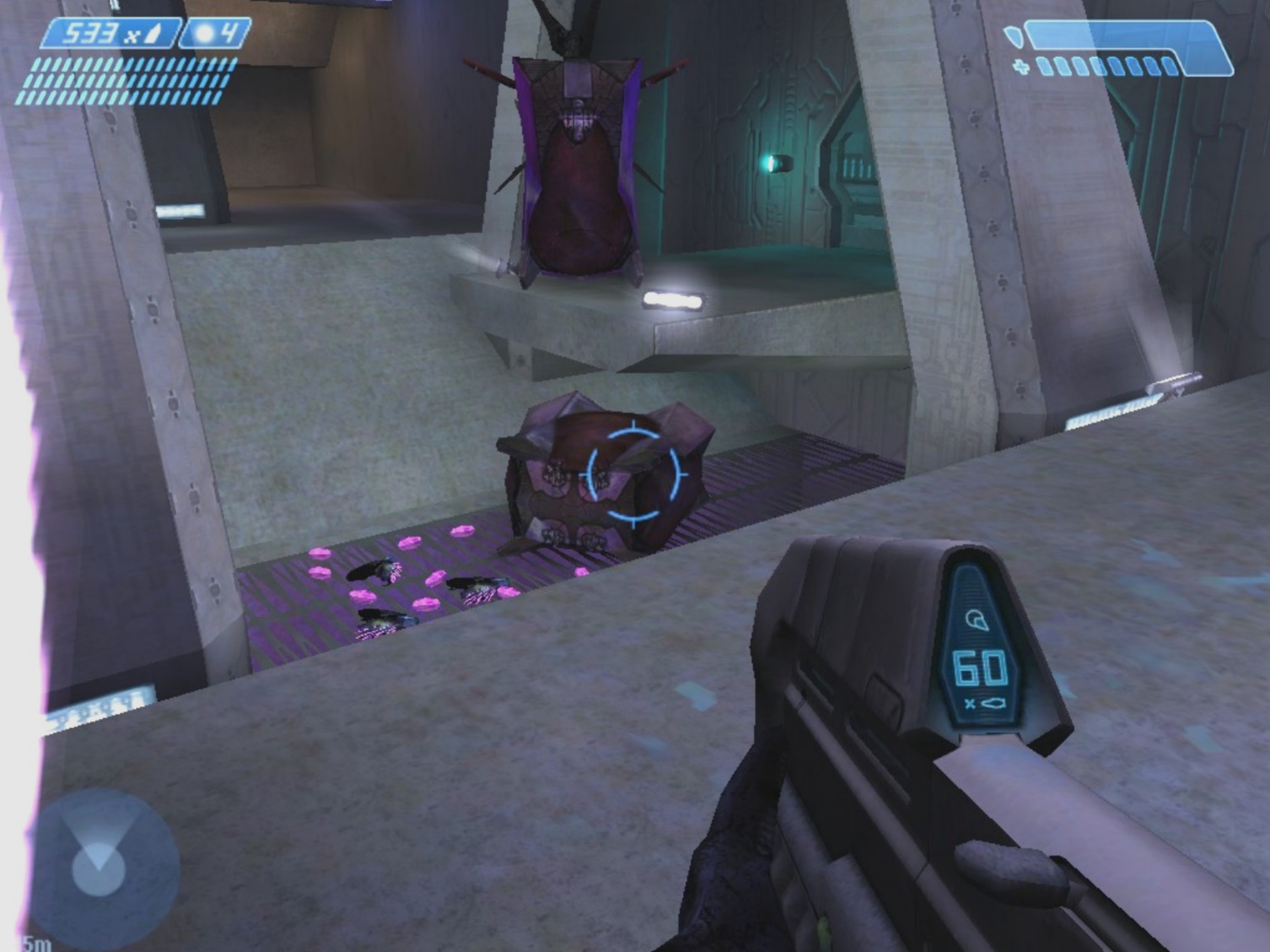 士官長走到一扇貼了密碼破解器的門前,突然感覺背后有沙沙的聲音,舉槍回頭,缺什么也沒看見。