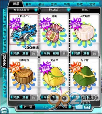 點擊換極品道具按鈕,我們就進入了的商城兌換專區,用幸運幣可以兌換各種各樣的道具,包括獨一無二的【S車天機線】在內的極品賽車哦!