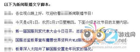 第四個,某游戲資訊門戶,愚人節那天發布了一條WLK開了的新聞,害的好多玩家激動的點進去一看,結果才發現是被忽悠,雖然是愚人節,但是編輯老往大家傷口上撒鹽,這個是不是也太不厚道了?