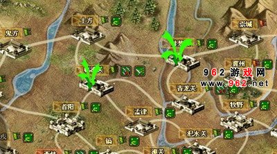 作為雙主線游戲,《龍之霸業》游戲中分任務地圖和勢力地圖,玩家只需點游戲界面的【勢力圖】即可進入戰場地圖。游戲當前處于第一階段——封神時代,主要分商周兩大勢力,各自占據幾大城池。