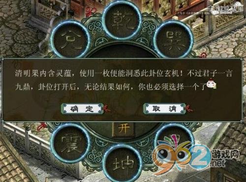 獎勵選擇的畫面,這便是這次活動的一種全新的獎勵方式:抽獎形式。神兵、龍骨等各種豐厚的獎勵將出現在八卦轉盤內,開始與停止的按鈕掌握在玩家手里,大大增強了游戲的樂趣。