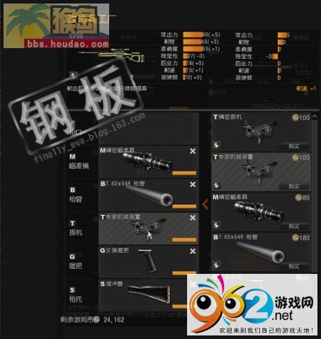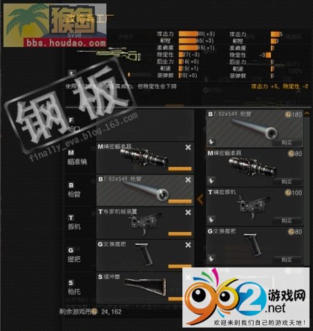 這里你需要知道的一點(diǎn)是:為了保持槍械系統(tǒng)的平衡性,不是每一把槍都能加裝所有的配件!還有你需要了解槍械屬性值一些術(shù)語(yǔ)的解釋詳細(xì)的見(jiàn)我的博文《AVA槍械數(shù)據(jù)名詞詳解》,了解了這些,有助于你的改槍,更有針對(duì)性。