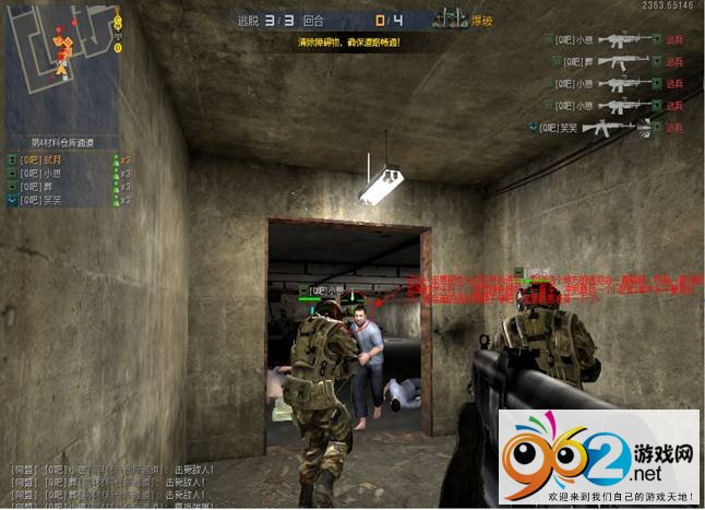 記住一定要沖到門旁邊開門。開完門以后速度后退。否則迎接你們的是個導彈然后你們四個一起OVER。)這關就是要把上面拿槍的重刑犯都干掉。重刑犯血很多了。不過他們等級看上去好高好漂亮什么時候我也那等級多好啊。如果有個狙擊就讓狙擊打 其他人掩護。記住千萬別打中間的木頭箱子打了。否則會有很多小垃圾逃犯過來(相對于重刑犯的確是垃圾,但是別小看哦。他們都是的敏捷型逃犯,也有紅色的斧頭高攻逃犯,不想過關就把中間的木頭箱子都打了吧,迎接你的是群魔亂舞,如果你認為自己技術超級變態(tài),那么你就打了吧否則沒刺激的感覺了。)。