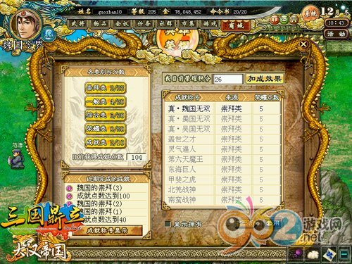 《三國鼎立》一直都是一個趣味十足的游戲世界,在這里,您不僅能夠體會到SLG戰(zhàn)棋模式的經(jīng)典再現(xiàn),更能體會到最輕松最好玩的游戲!隨著大漢帝國一起推出的成就系統(tǒng),就將游戲內(nèi)的新舊系統(tǒng)都網(wǎng)羅在一起,為各種活動的贏家安排了各種搞笑好玩的成就名字!
