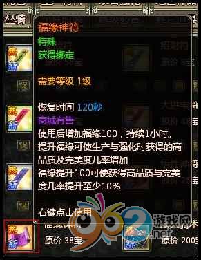 強化一詞在這里用的比較模糊。什么算是強化呢?據驗證,福緣提升后,銘文、鐫刻、淬火等基本屬性提升功能的幾率以及開孔幾率都會增加,完美幾率也會提高。甚至有坊間秘傳,福緣高了,鑒定出好裝備的幾率也會增加。無論真假,我們暫且信其真吧,就當為自己的武器裝備多買一份保險。