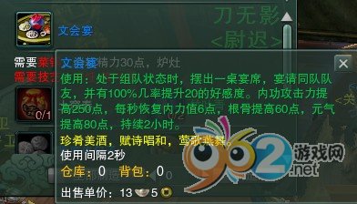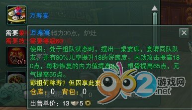 最近發(fā)現(xiàn)烹飪新出了兩個宴席文會宴和萬壽宴。屬性如圖: