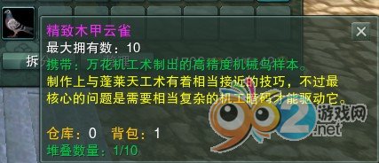 之后對著精致木甲素材點右鍵,就可以做出精致木甲云雀,這個是現(xiàn)在英雄戰(zhàn)寶必備的物件之一。如圖: