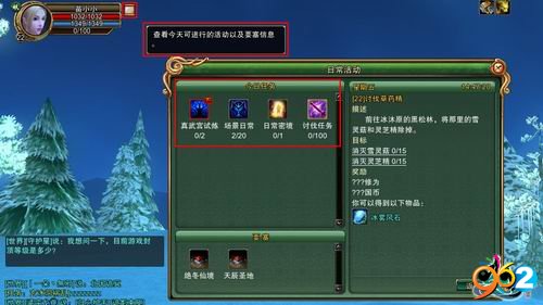 日常活動是大家快速升級的重要途徑,切記多來參與。在各個地圖的主城或者最大補給點(各村莊)找到普濟宗(M鍵打開地圖,點擊右側的日常任務試煉,即可找到日常任務的領取者普濟宗智者和普濟宗尊者)接受日常副本和日常任務。