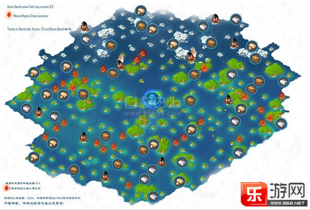 該地圖包含資源島,恐怖博士,鋼材資源島和熔巖水晶的位置。但熔巖水晶位置不是太全。