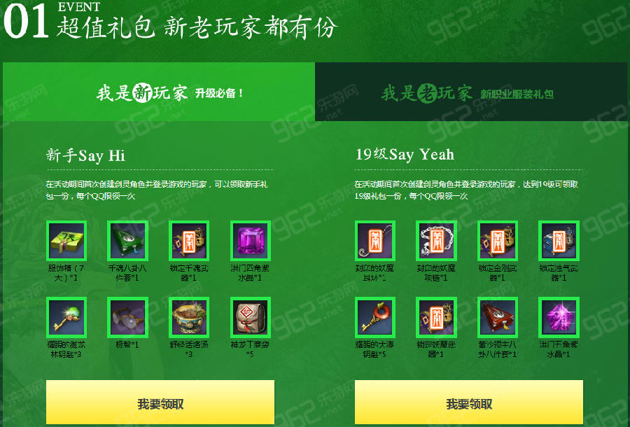 2. 新手禮包:在活動(dòng)期間首次創(chuàng)建劍靈角色并登錄游戲的玩家,可領(lǐng)取新手禮包一份,達(dá)到19級(jí)時(shí),可領(lǐng)取19級(jí)禮包一份,以上禮包單Q限領(lǐng)一個(gè);