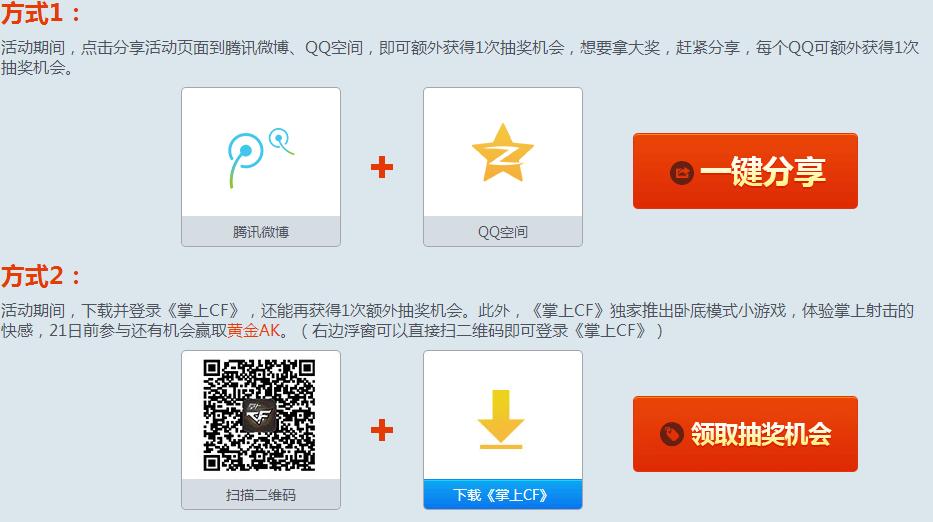 6、活動期間,下載并登錄《掌上CF》,還能再獲得1次額外抽獎機會。此外,《掌上CF》獨家推出臥底模式小游戲,體驗掌上射擊的快感,21日前參與還有機會贏取黃金AK。(右邊浮窗可以直接掃二維碼即可登錄《掌上CF》)