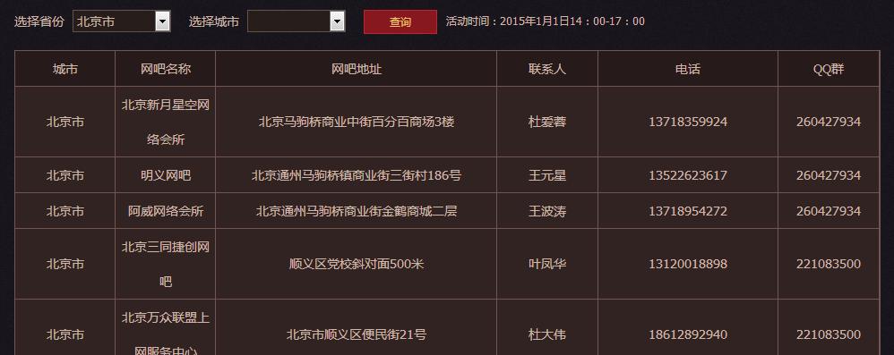 2015年元旦當天,您可以通過以下列表,查詢離您最近的網(wǎng)吧,藍鉆貴族請你免費體驗,還有免費黃金英雄武器贈送!GOGOGO!