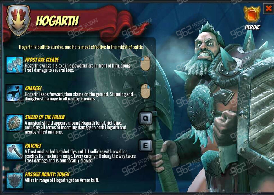 左鍵:戰(zhàn)斧 霍加斯用他的斧子橫掃前方,能夠攻擊多個(gè)敵人。
