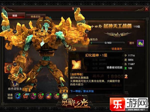 達到幻化一層后,將激活一個額外的騎獸被動技能—幻化超神,可提升一定的元素精通,放大元素攻擊效果,大幅提升戰斗力。