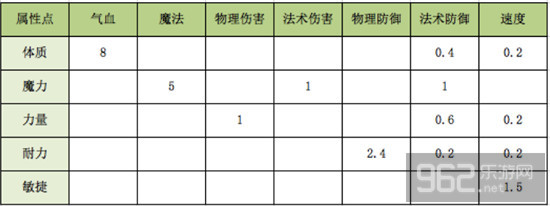 個(gè)人分別研究了仙族、人族、魔族三個(gè)種族每1點(diǎn)屬性點(diǎn)對(duì)屬性的加成,發(fā)現(xiàn)與端游不同,手游中各個(gè)種族對(duì)于屬性點(diǎn)的加成竟然是一模一樣的,統(tǒng)一歸納如下表所示。