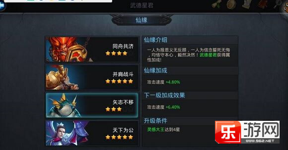 [樂游網(wǎng)導(dǎo)讀]仙緣系統(tǒng)是亂斗西游在前不久開啟的系統(tǒng),玩家們可以通過英雄之間的仙緣系統(tǒng)獲得屬性加成,相信玩家們對武德星君這個新英雄的仙緣伙伴還不了解,下面請看具體的介紹!