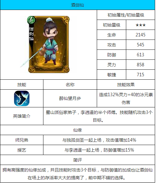 以上便是小編為大家帶來新仙劍奇俠傳中酒劍仙的屬性圖鑒解析。