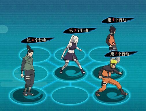 第二回合:鳴人奧義水月,火主會睡重吾行動完后會恢復20點查克拉,鹿丸給佐助定身,井野追打混亂。
