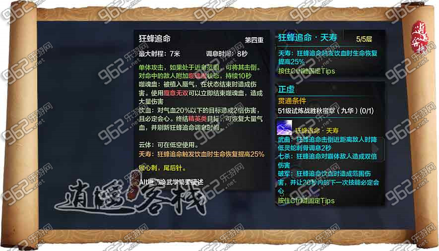 狂蜂追命首先強化的是,飲血時提升生命回復(fù)量,實用性較低。三個效果強化中,一般選用破軍強化,配合飲血效果,使得下次技能必定會心;在BOSS戰(zhàn)中選用七殺強化對BOSS造成雙倍傷害;在PVP中選用武曲強化降低靈蛇刺骨的CD。