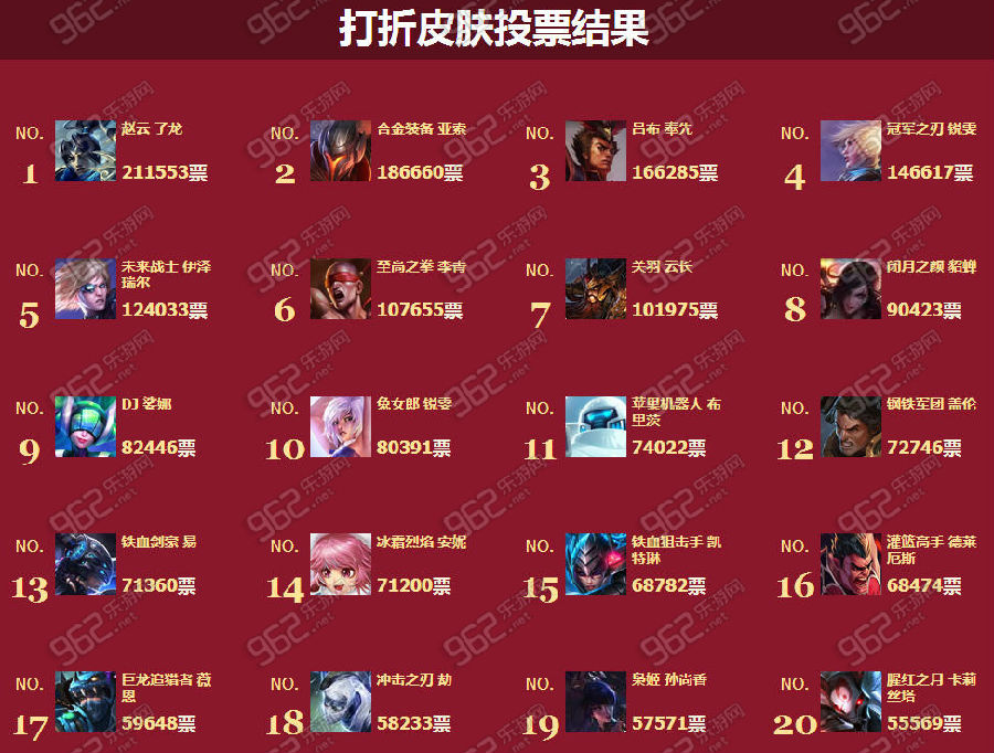 2、8月31日結束后,我們會在得票數量最高的20款皮膚中挑選10款作為最終促銷皮膚,促銷活動將在10月份進行(具體促銷時間請關注官方公告);