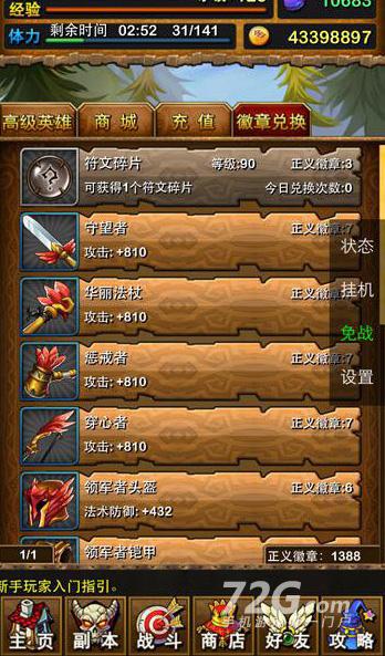 召喚BOSS獲得正義勛章將可兌換符文碎片