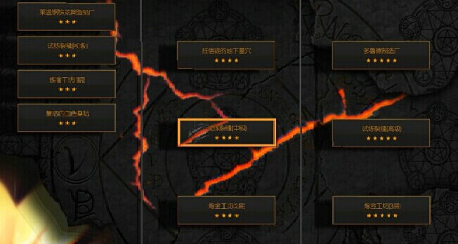 首先是以太力副本,大家可以看到,最上面橫著一排的3個副本都是掉落武器的, 而下面的試練和煉金則是掉落防具的
