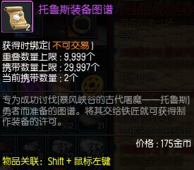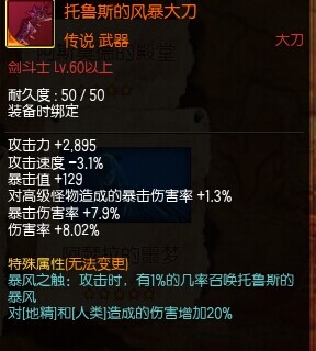 同時討伐副本現(xiàn)在也開啟了,各種各樣的領(lǐng)主傳說,看的我是直流口水 。 大家可以看到,每一個領(lǐng)主掉落的同類型武器分別有兩把,比如說[托魯斯的風暴大刀]和[托魯斯的颶風大刀], 兩者的特殊屬性是一樣的, 區(qū)別就在于基礎(chǔ)屬性風暴大刀很明顯的比颶風大刀好了不少