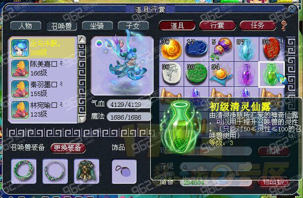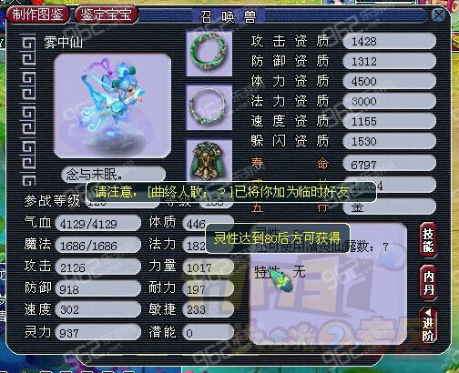 霧中仙變成這個樣子了。并且多得到了200多的屬性點。