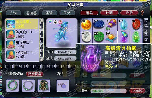 然后用那個清靈仙露,可以點出,高級,中級,初級三種仙露。