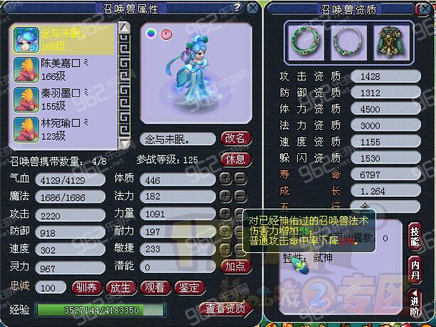 霧中仙變成這個樣子了。并且多得到了200多的屬性點。