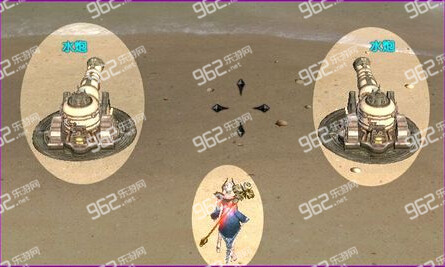 開啟游戲后會(huì)開始倒計(jì)時(shí)5秒,請玩家第一時(shí)間乘坐任務(wù)NPC邊沙灘上的水炮。